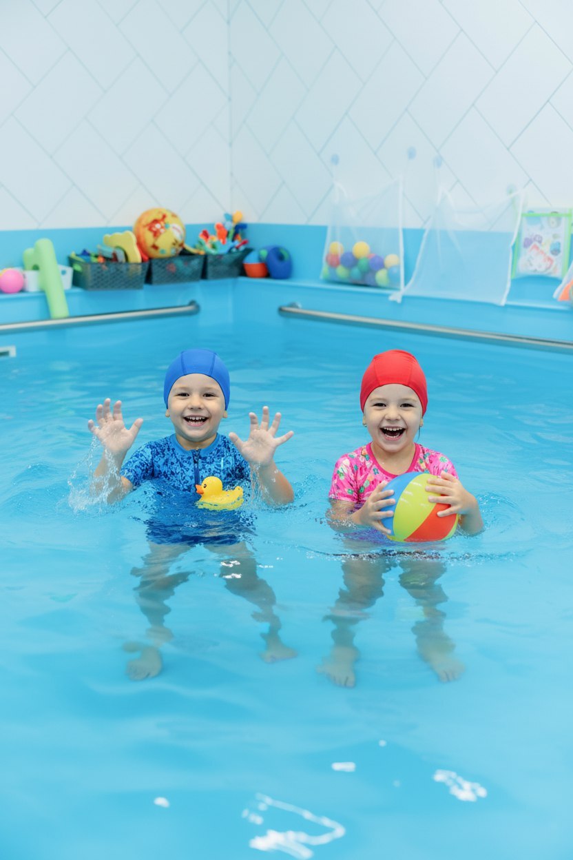 А ваш друг получает набор юного пловца: папку, игрушку, шапочку и дневник достижений
